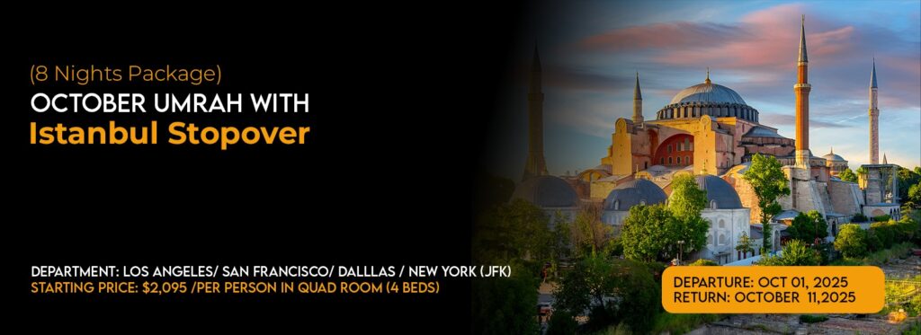 Join our exclusive 10-night October 2025 Umrah package with a special Istanbul experience. A perfectly planned journey combining spiritual fulfillment and enriching travel.